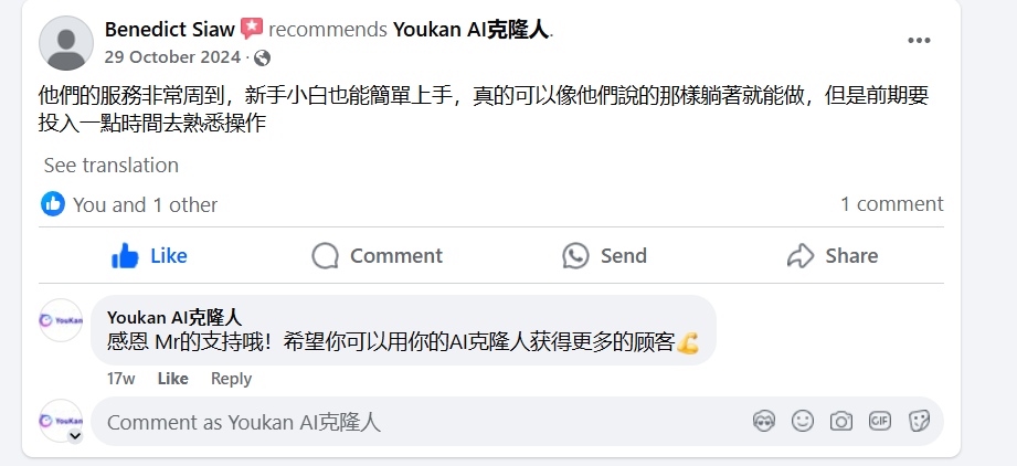 i. 实战经验丰富:马来西亚第一家用 AI 克隆人取得成功的团队,是200+ 商家Ai短视频顾问,行业覆盖纹身、地产、保险、美容等。