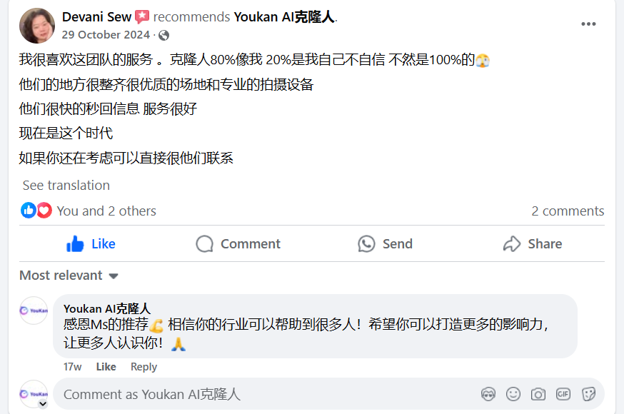 在马来西亚需要AI克隆人,就找我们克隆大叔团队: